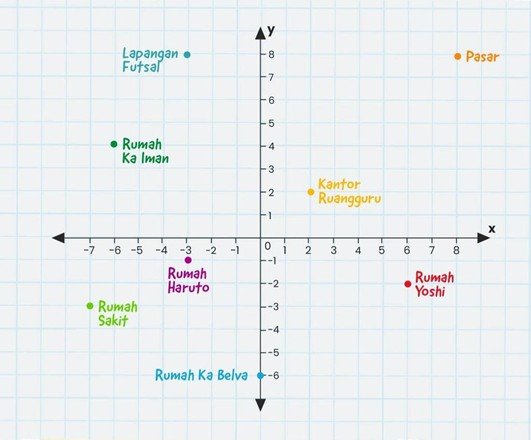 18. Koordinat titik yang terletak 5 ke kanan dan 3 ke atas adalah ...