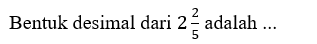 6. Bentuk desimal dari 2 (2/5) adalah ...