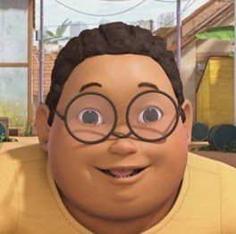10. Denis has … face.